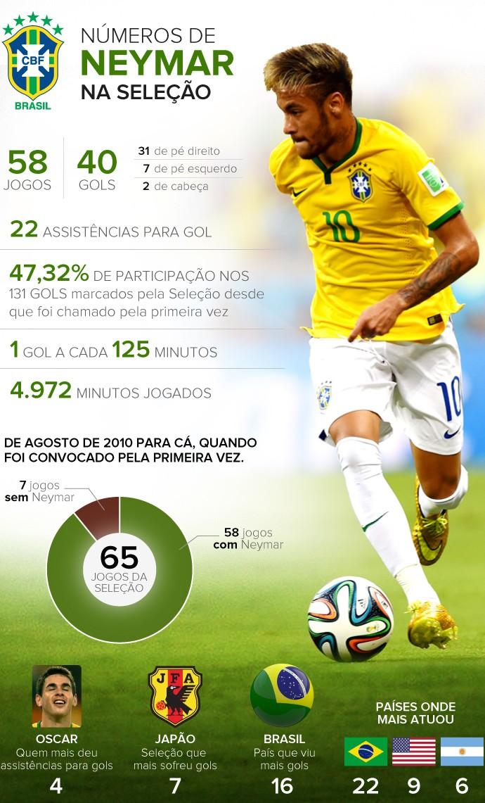وفقا لاحصائية نشرها موقع جلوبو البرازيلي فإن نجم برشلونة نيمار جونيور منذ انضمامه لمنتخب السامبا في 2010 وهو يحقق أرقاما مذهلة قد تجعله في قادم السنوات الهداف التاريخي لمنتخب السامبا .