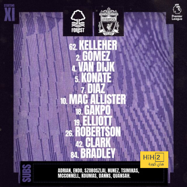 وإليكم تشكيلة ليفربول الرسمية لمواجهة نوتنجهام فورست: