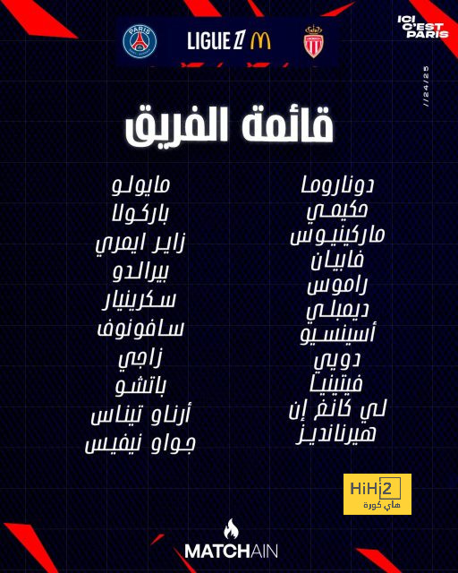 جاءت قائمة باريس سان جيرمان الذي يقوده فنيا لويس انريكي لمواجهة موناكو كالآتي:-