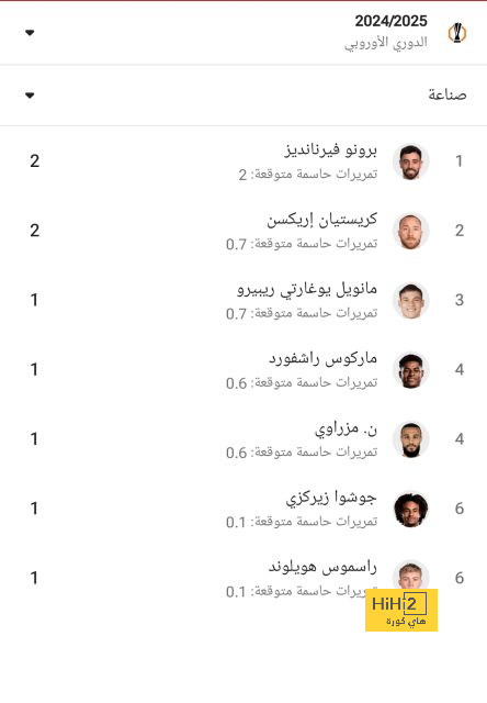 وقبل اللقاء، يتصدر برونو فيرنانديز، قائمة أكثر لاعبي اليونايتد صناعة للأهداف في الدوري الأوروبي هذا الموسم، حيث قدم تمريرتين حاسمتين، متساويًا مع إريكسن.