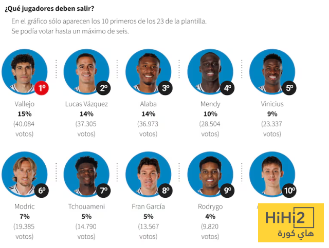 جاء خيسوس فاييخو في المركز الأول بنسبة 15%، وهو ما لم يكن مفاجئًا نظرًا لدوره المحدود هذا الموسم وعدم اعتماده في التشكيلة الأساسية.