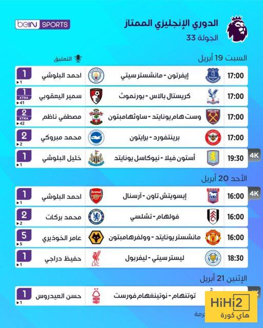 إليكم معلقين مباريات الجولة الـ33 في البريميرليج: