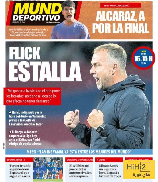 هاي كورة _ قامت صحيفة موندو ديبورتيفو الكتالونية بتسليط الضوء في عددها الصادر اليوم على التصريحات النارية، التي أدلى بها المدرب هانز فليك في المؤتمر الصحفي الذي يسبق مباراة برشلونة وسيلتا فيغو.