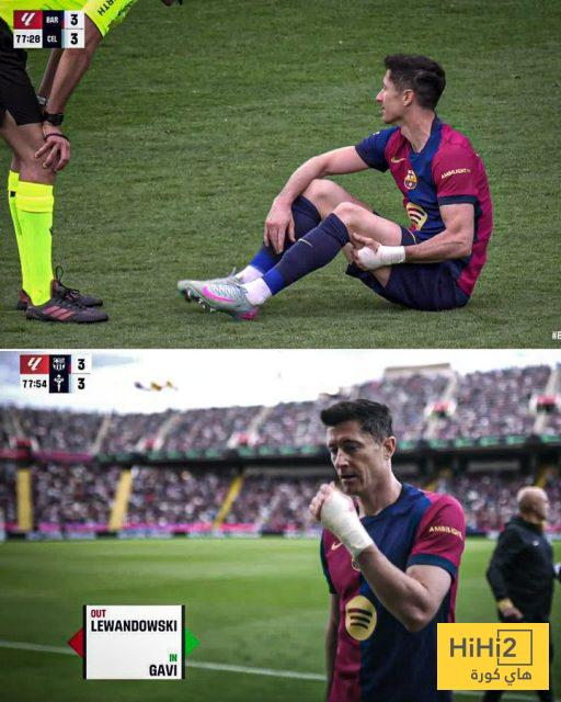 هاي كورة- تعرض روبرت ليفاندوفسكي، لاعب برشلونة، لإصابة خلال مباراة فريقه ضد سيلتا فيغو في إطار الجولة 32 من الدوري الإسباني.