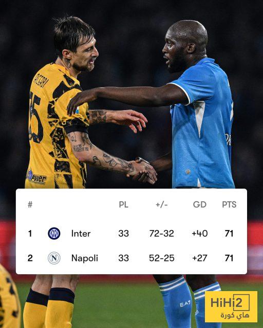 هاي كورة: تلوح في الأفق مواجهة تاريخية في الدوري الإيطالي، حيث تشير اللوائح إلى إقامة مباراة فاصلة بين إنتر ميلان ونابولي في حال أنهيا الموسم بنفس عدد النقاط في صدارة الترتيب.