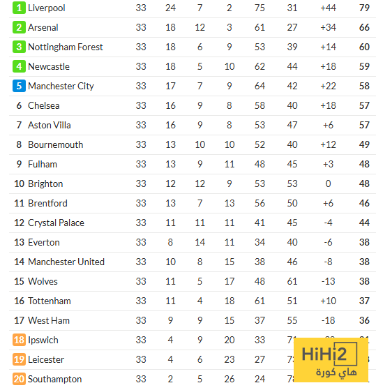هاي كورة – استطاع ليفربول أن يحفاظ على فارق النقاط بينه وبين أرسنال عقب نهاية الجولة الـ33 من الدوري الإنجليزي الممتاز.