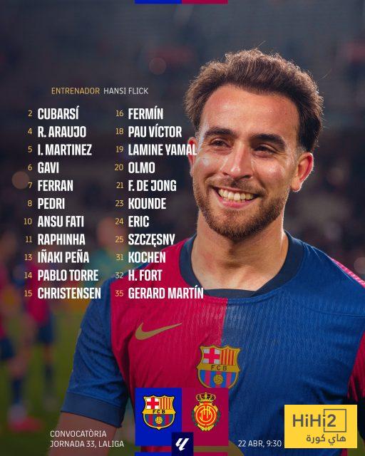 هاي كورة – أعلن المدرب الألماني، هانز فليك، عن قائمة برشلونة الرسمية لمواجهة ريال مايوركا، اليوم الثلاثاء، على ملعب مونتجويك، ضمن منافسات الجولة الـ 33 من بطولة الدوري الإسباني.