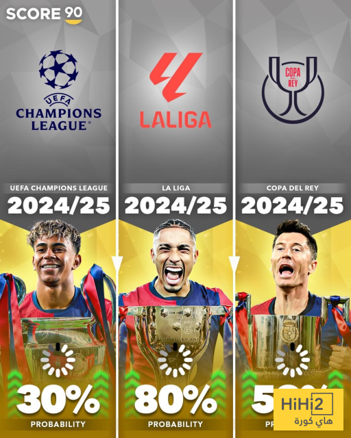 حظوظ برشلونة في نهائي كاس الملك تبلغ 59 % مقابل 41 % لغريمه ريال مدريد ، و في الدوري الاسباني تبلغ 80 % مقابل 20 % لملاحقه المباشر ريال مدريد و في دوري ابطال اوروبا تصل الى 30 % مقابل اقل من 25% لكل ضلع من الاضلاع الثلاثة للمربع الذهبي انترناسيونالي ، باريس سان جيرمان و ارسنال.