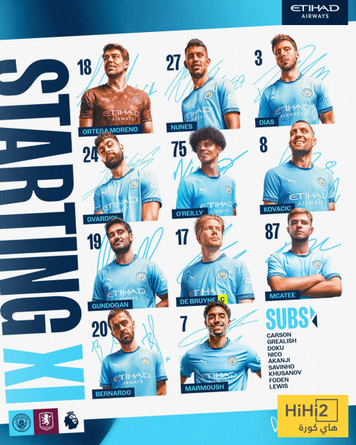 هاي كورة- أعلن بيب غوارديولا عن تشكيلة مانشستر سيتي الرسمية ضد استون فيلا مساء اليوم ، الثلاثاء ضمن منافسات الجولة الـ 34 في الدوري الانجليزي الممتاز.