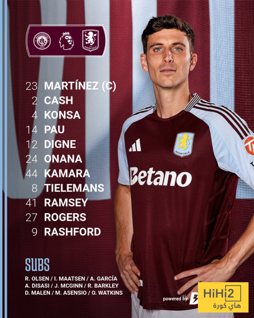 على الجانب الآخر اعلن اوناي ايمري عن تشكيلة استون فيلا الرسمي ضد السيتي ، وجاءت كالتالي: