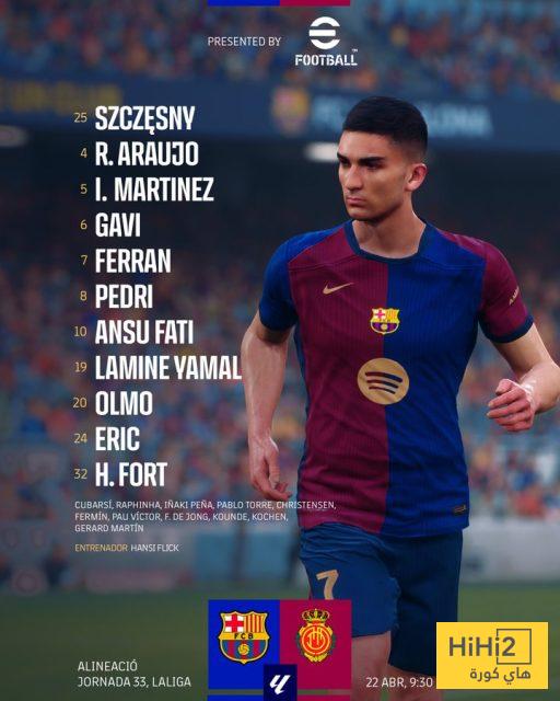 هاي كورة- أعلن هانزي فليك مدرب برشلونة عن تشكيلة فريقه الرسمية لمواجهة ريال مايوركا، على ملعب مونتجويك ، ضمن منافسات الجولة الـ33 من مسابقة الدوري الإسباني.