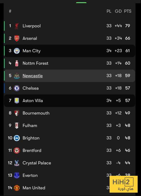 ترتيب الدوري الانجليزي الممتاز حاليا: