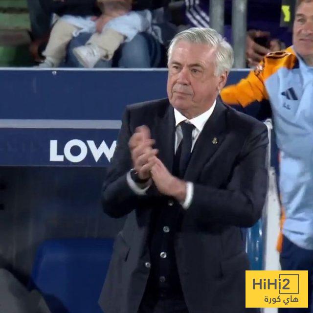 كارلو أنشيلوتي مدرب الريال تفاعل مع الهدف معربا عن سعادته الشديدة ثم صفق لـ غولر: