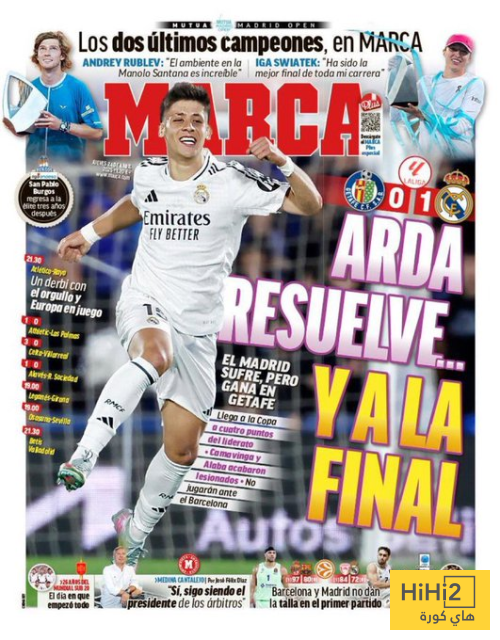 هاي كورة- تصدر انتصار ريال مدريد على خيتافي (1-0) مساء امس الاربعاء ضمن منافسات الجولة الـ 33 في الليغا غلاف صحيفة ماركا الاسبانية .