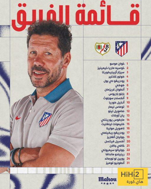وإليكم قائمة أتلتيكو لمواجهة رايو: