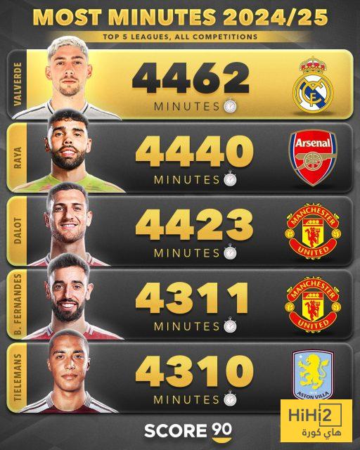 هاي كورة – وفقًا لموقع Score 90، يُعتبر فيدي فالفيردي، نجم ريال مدريد، أكثر لاعب مشاركة في المباريات هذا الموسم ضمن الدوريات الخمسة الكبرى، حيث لعب 4462 دقيقة.