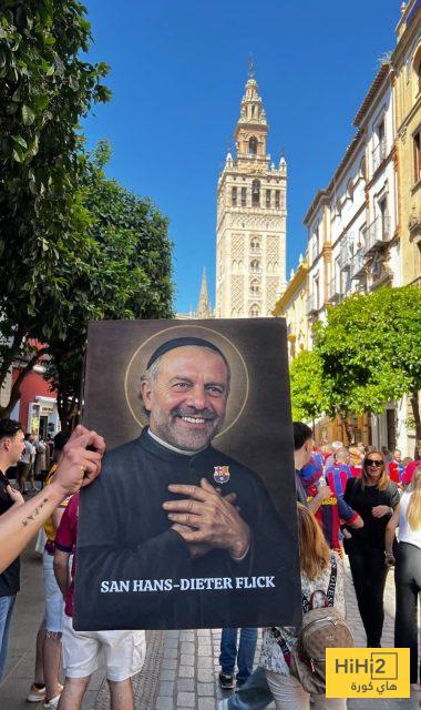 وحرصت الجماهير على رفع لافتات دعماً لمدرب الفريق هانسي فليك، الذي وصفته بعض اللافتات بـ”القديس”، وسط أجواء حماسية خلف برج لا جيرالدا الشهير.