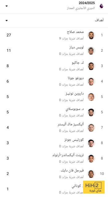 وإليكم، قائمة هدافي الليفر في الدوري هذا الموسم: