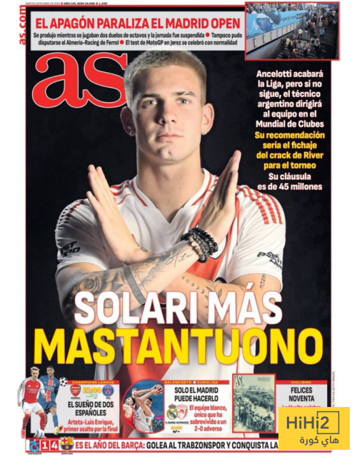 هاي كورة- تصدر لاعب ريفر بليت الارجنتيني فرانكو ماستانتونو غلاف صحيفة أس الاسبانية بعد اهتمام الريال بالتوقيع معه بطلب من سانتياغو سولاري.