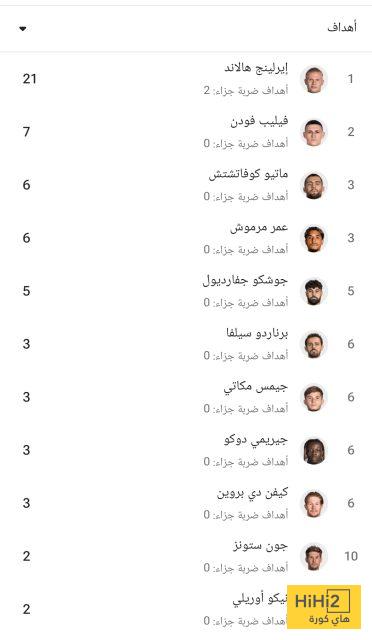 ويتصدر هالاند قائمة هدافي السيتي في الدوري هذا الموسم، حيث تمكن من تسجيل 21 هدفًا.