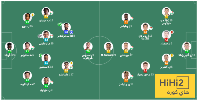 سجل أهداف اليونايتد كاسيميرو و برونو فيرنانديز هدفين في الدقائق 45,37,30 من عمر الشوط الأول.