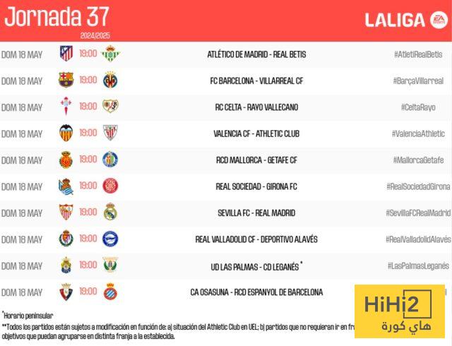 هاي كورة – حسب ما أعلنته رابطة الدوري الإسباني لكرة القدم، تم تحديد مواعيد المباريات للجولة الـ37 من الدوري الإسباني، حيث ستُقام جميع المباريات في نفس التوقيت.