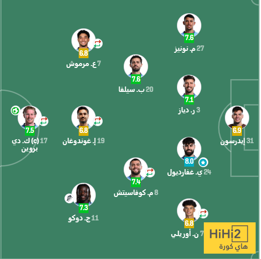 سجل دي بروين هدف مانشستر سيتي في الدقيقة 35 من عمر الشوط الأول.