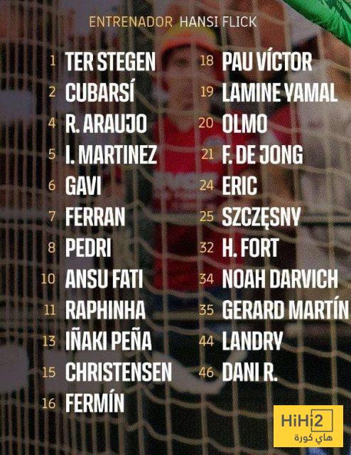 هاي كورة – أعلن المدرب الألماني هانز فليك قائمة برشلونة الرسمية لمواجهة بلد الوليد، اليوم السبت، ضمن منافسات بطولة الدوري الإسباني.