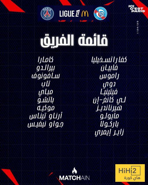 هاي كورة – أعلن لويس إنريكي، مدرب باريس سان جيرمان، قائمة فريقه الرسمية لمواجهة ستراسبورغ، اليوم السبت، ضمن منافسات بطولة الدوري الفرنسي.