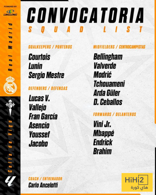 هاي كورة – أعلن المدرب الإيطالي كارلو أنشيلوتي، عن قائمة ريال مدريد الرسمية لمواجهة سيلتا فيغو، غدًا الأحد، على ملعب سانتياغو برنابيو، ضمن منافسات الجولة الـ 34 من بطولة الدوري الإسباني.