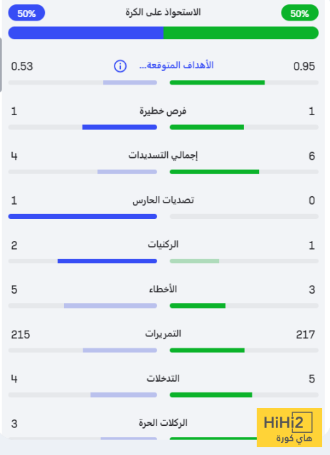 إليكم احصائيات الشوط الأول: