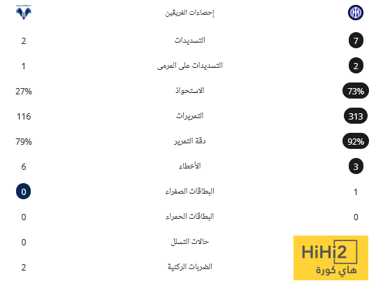 احصائيات الشوط الاول من المباراة: