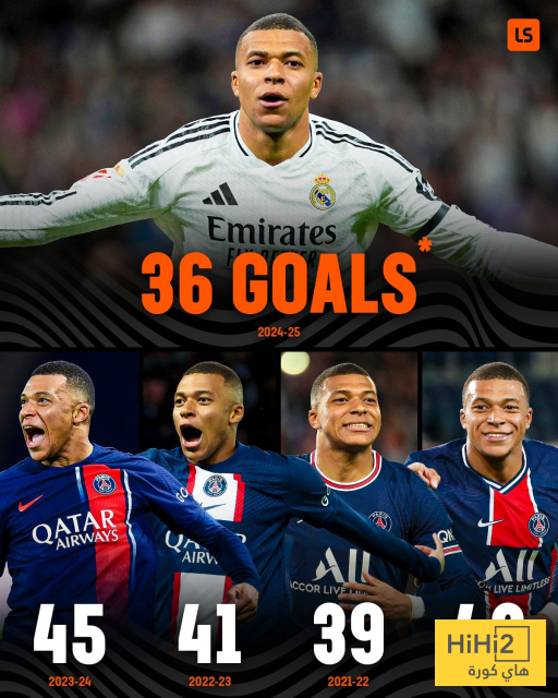 الرصيد التهديفي الذي بلغه مبابي يحققه للموسم الخامس على التوالي في مشواره الاحترافي بعدما حققه اربعة مواسم مع باريس سان جيرمان حيث سجل: