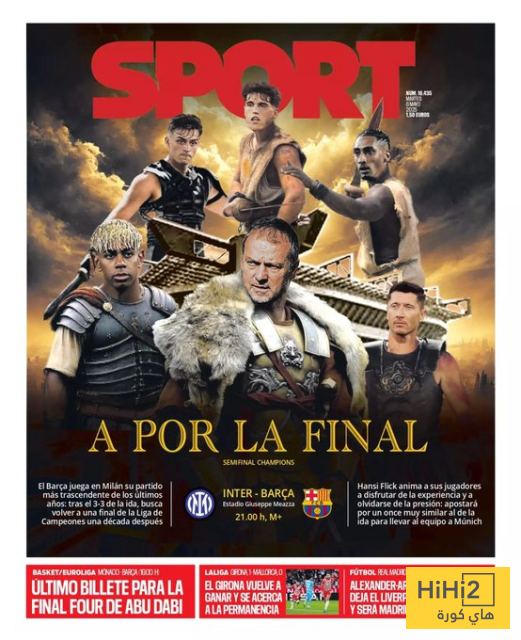صحيفة سبورت وصفت المباراة بالحرب وجعلت من لاعبي البارسا محاربين بكامل العتاد تحت قيادة واحد من أمهر القادة “هانز فليك” الذي يريد الوصول الى نهائي آخر في موسمه الاول مع الفريق الكتالوني.