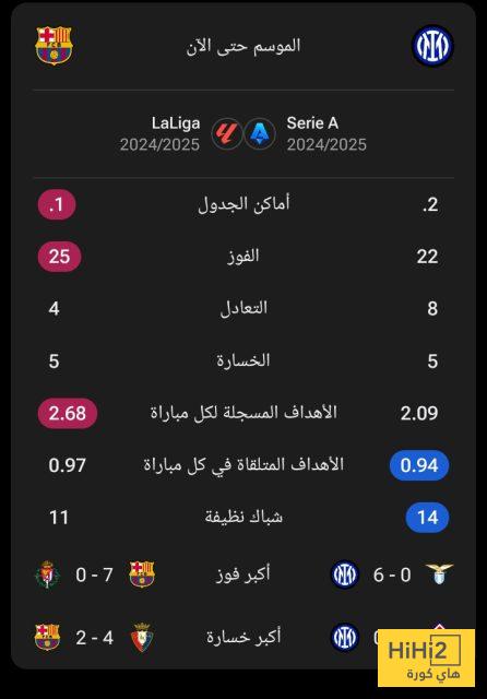 قبل مواجهة الفريقين في دوري أبطال أوروبا إليكم نتائج الإنتر و برشلونة هذا الموسم في الدوري المحلي: