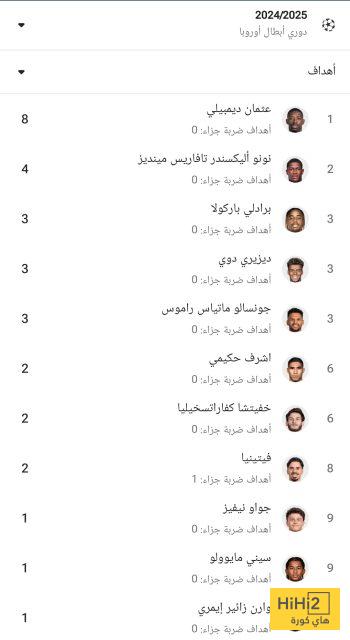 ويتصدر الفرنسي عثمان ديمبيلي، قائمة هدافي باريس في دوري الأبطال هذا الموسم، حيث تمكن من تسجيل 8 أهداف حتى الآن.