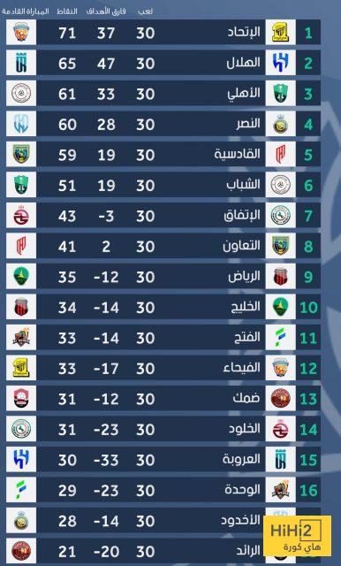 وإليكم ترتيب الدوري السعودي كاملا: