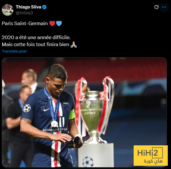 هاي كورة- حرص تياغو سيلفا نجم باريس سان جيرمان السابق على تهنئة الفريق الباريسي بعد التأهل الى نهائي دوري ابطال اوروبا.