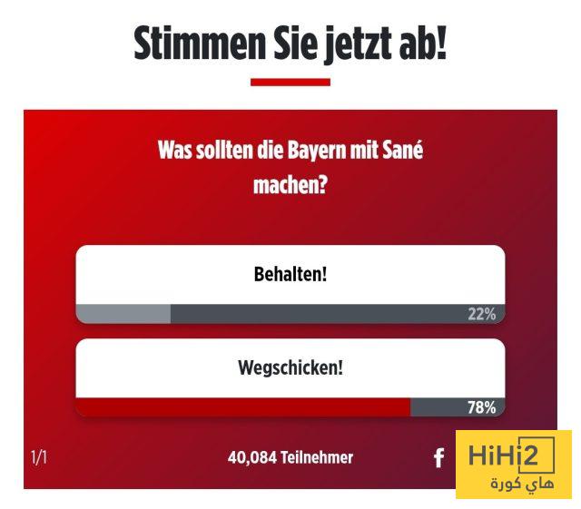 هاي كورة – في خطوة مفاجئة، أطلقت صحيفة بيلد استطلاع رأي حول مستقبل نجم بايرن ميونخ، ليروي ساني، الذي يعيش حالة من عدم الاستقرار في صفوف الفريق.
