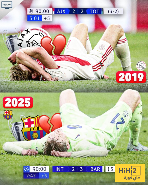 هاي كورة- عاش متوسط الميدان الهولندي فرينكي دي يونغ في مباراة ناديه برشلونة و انتر ميلان الثلاثاء المنصرم سيناريو حزين و مؤلم سبق ان عاشه مع ناديه الاسبق اياكس امستردام عام 2019 في نفس الدور من نفس المسابقة دوري ابطال اوروبا .