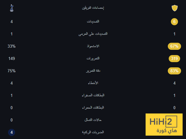 احصائيات الشوط الاول من المباراة: