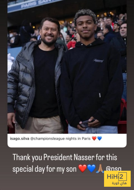 تياغو سيلفا كتب عبر حسابه الرسمي على موقع انستغرام : “شكرا الرئيس ناصر على هذا اليوم الخاص لإبني”.