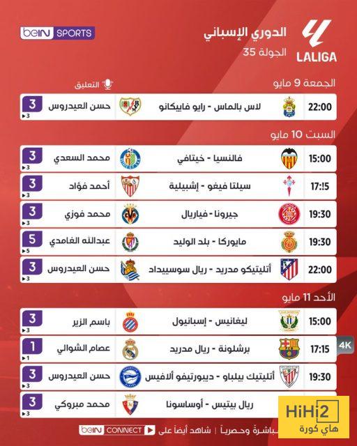 إليكم قائمة معلقي مباريات الجولة الـ35 في الليغا: