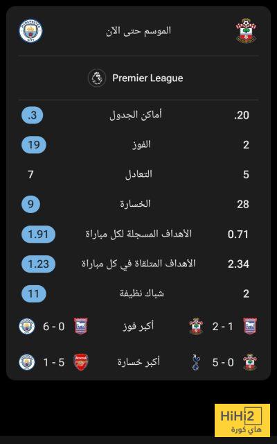 نتائج مانشستر سيتي و ساوثهامبتون هذا الموسم