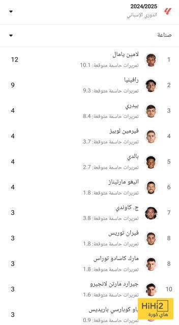 قبل اللقاء، يتصدر لامين جمال قائمة أكثر لاعبي البارسا صناعة للأهداف في الليغا هذا الموسم، حيث قدم 12 تمريرة حاسمة حتى الآن.