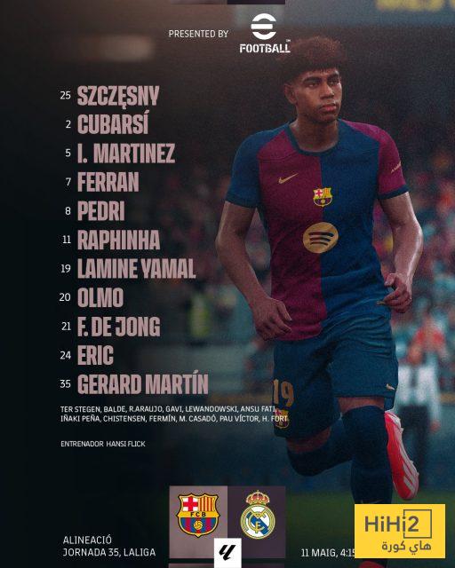 إليكم تشكيلة برشلونة الرسمية للقاء ريال مدريد: