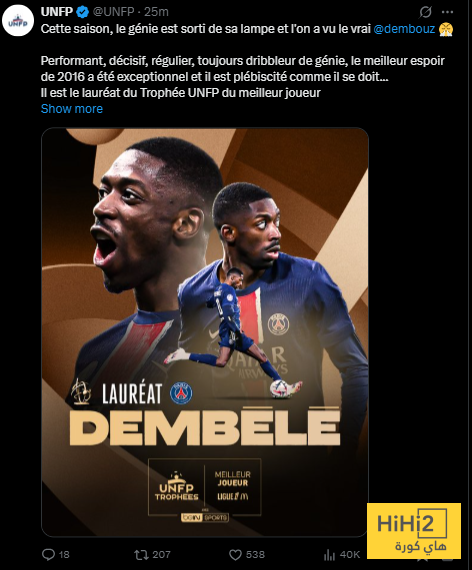 هاي كورة- حصد عثمان ديمبلي نجم باريس سان جيرمان جائزة افضل لاعب في الدوري الفرنسي في حفل جوائز الكرة الفرنسية ، اليوم الاحد.