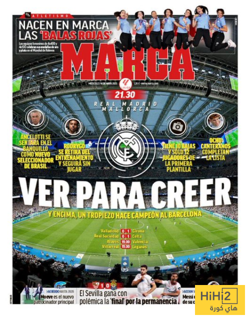 هاي كورة- تصدرت مباراة ريال مدريد ضد مايوركا المقررة مساء اليوم الاربعاء ضمن منافسات الجولة الـ36 في الليغا غلاف صحيفة ماركا الاسبانية.