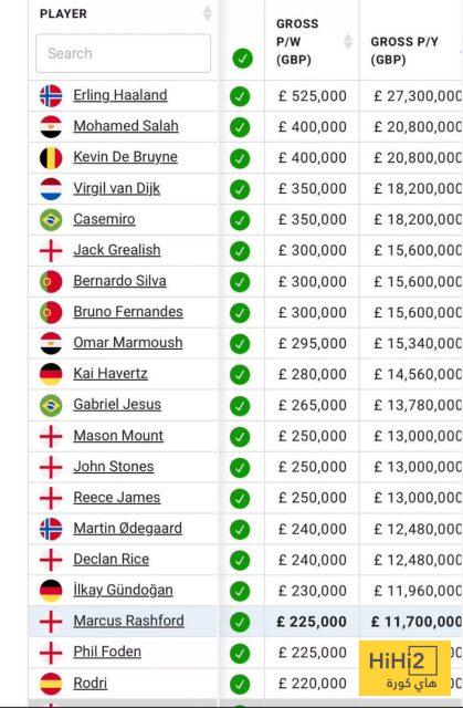 هالاند يتقاضى 525 ألف جنيه استرليني أسبوعيا بما يعادل 27 مليون سنويا بينما يحصل محمد صلاح على 400 ألف ما يعادل 20 مليون و 800 ألف سنويا يليه كيفين دي بروين و فيرجيل فان دايك والبرازيلي الدولي كاسيميرو.