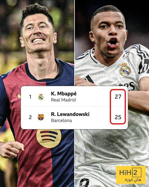 هاي كورة – تفوق كيليان مبابي لاعب ريال مدريد على مهاجم برشلونة روبرت ليفاندوفسكي وخطف صدارة الهدافين بـ27 هدفا هذا الموسم بعد إصابة البولندي وابتعاده عن المشاركة.
